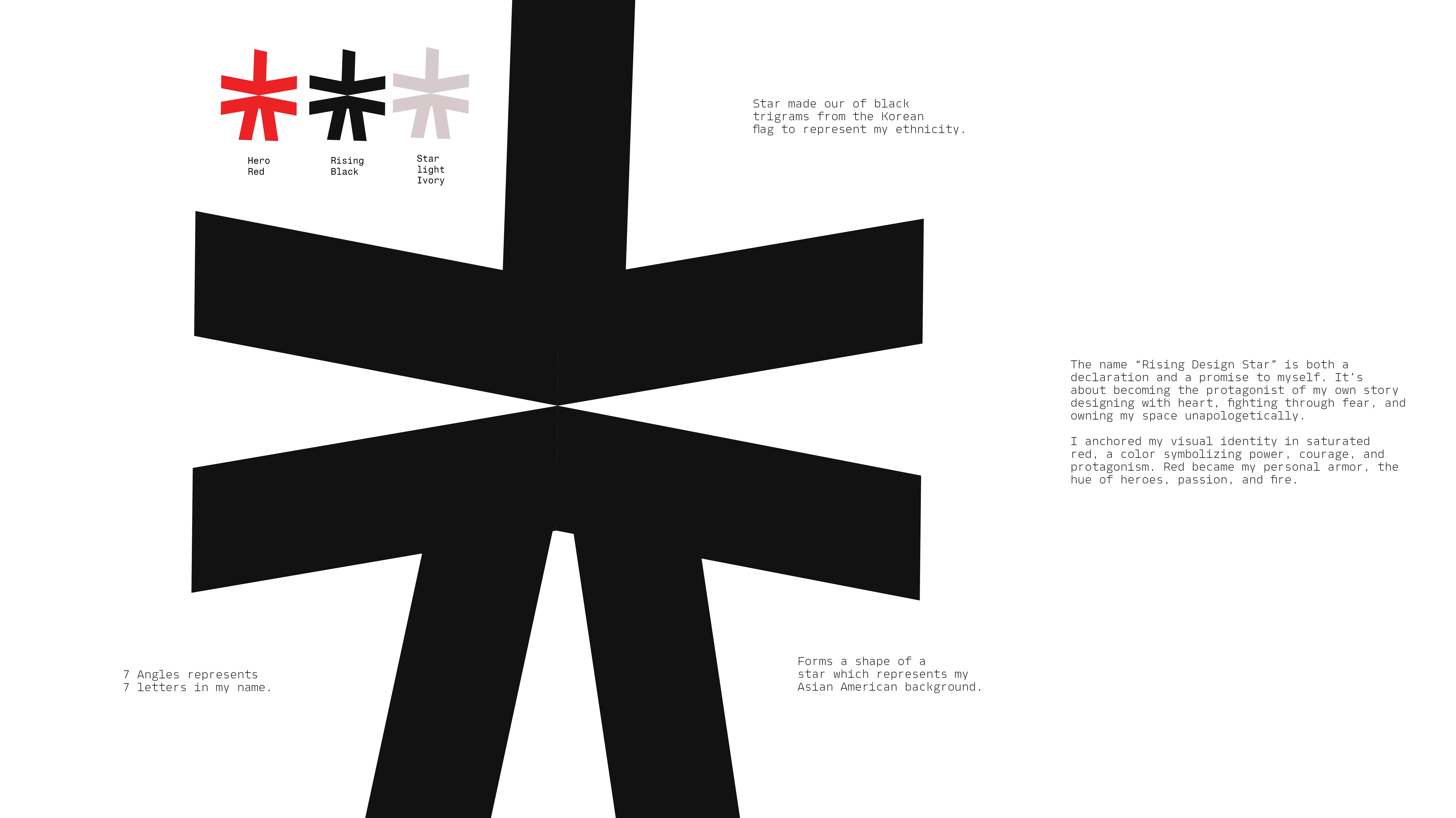 Rising Design Star is a personal branding project that transforms self-doubt into a bold, unapologetic identity. Developed in an Honors Design course, the project explores the tension between aspiration and reality, using design as a tool to “perform” confidence until it becomes truth. Rooted in the idea of becoming before being, the visual system exaggerates confidence through saturated red tones, star symbolism, and loud, expressive typography. The star acts as both a literal and metaphorical device;representing visibility, ambition, and the pressure of being seen.